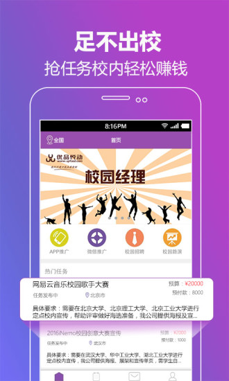 没有做校内活动的经验?我们有专业校园团队手把手指导!针对大型活动,平台会提供详细的培训资料和现场指导,确保每位同学都能胜任工作。