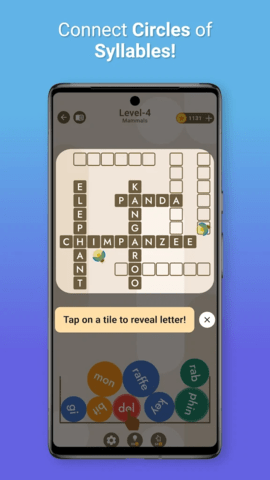 游戏采用创新的音节圆圈玩法:点击带有子单词的音节圆圈,在填字游戏网格中形成正确的单词。当你成功解题时,圆圈会以物理引擎模拟的方式落下,带来独特的视觉体验。游戏还提供实时发音反馈,每次点击音节圈都会播放标准发音,帮助你同步提升听说能力。通过每日、每周和每月的排行榜系统,你可以与全球玩家一较高下,见证自己的进步。