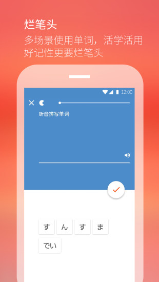 知识讲解、单词背诵、练习测试、总结复习、实战口语演练等等一系列完备的日语学习功能,带着你一步一个脚印的学好日语。每个环节都经过精心设计,确保学习效果最大化。