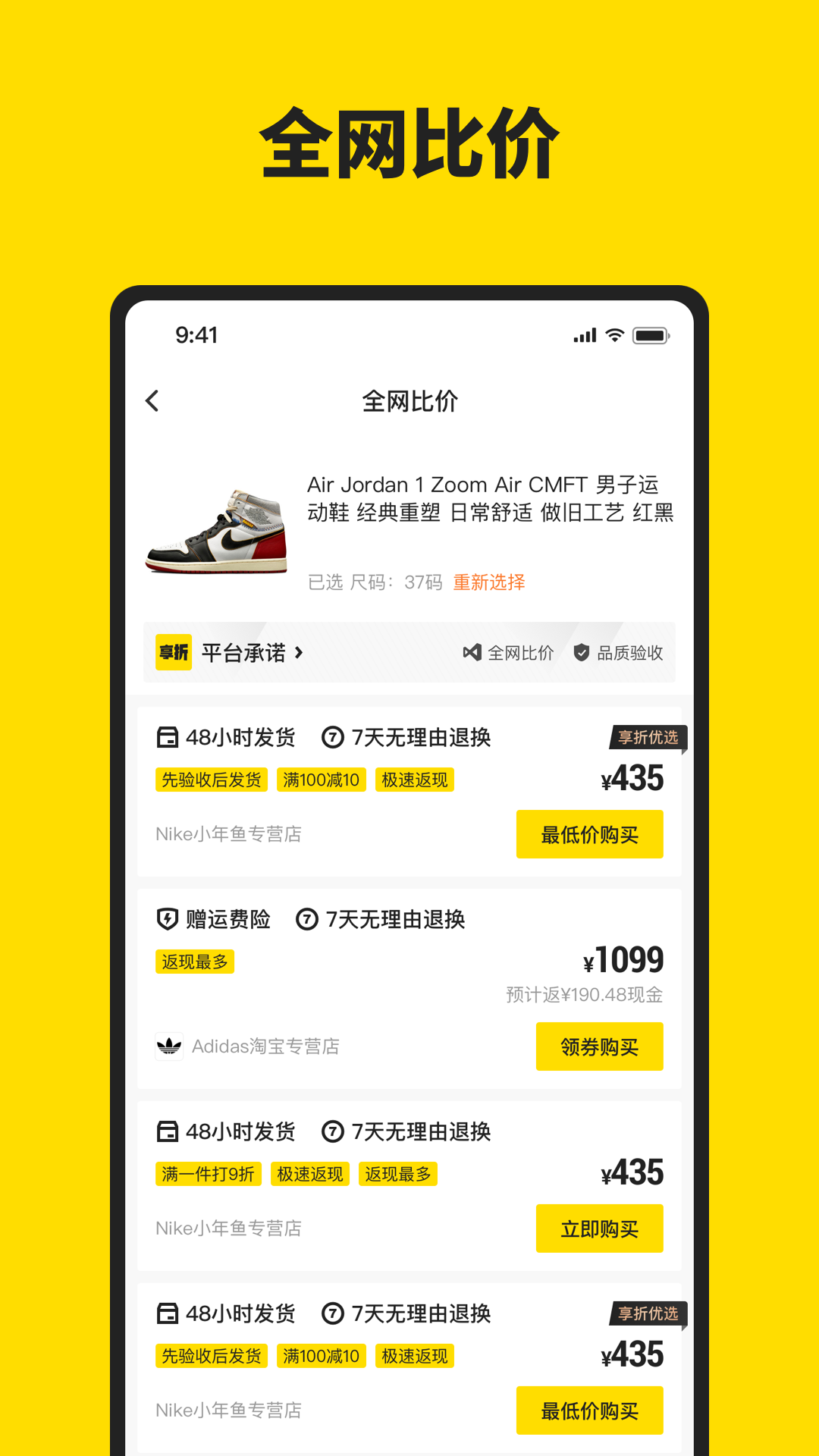 -全网比价,价格更低更实惠:享折接入超过100家主流电商平台数据,实时更新商品价格信息,确保用户看到的都是最新最优惠的价格。