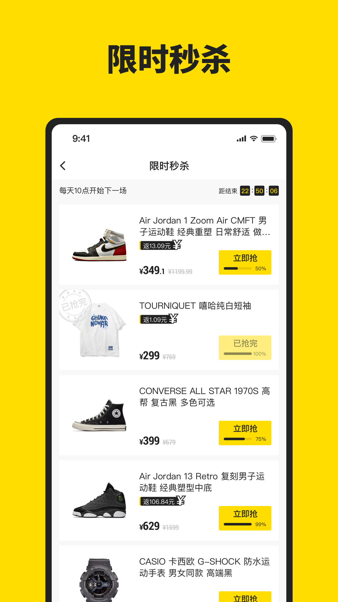 -限时秒杀,享受更低价格:每日定时开放爆款商品限时抢购,部分商品价格低至市场价的3折,更有整点免单等惊喜活动。