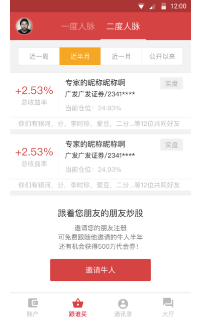 3.1版本带来了多项功能优化和体验升级。全新设计的账户管理界面更加简洁直观,让用户能够快速掌握资金动态。"跟谁买"模块经过重构,投资专家的信息展示更加全面细致。新增的"通讯录"功能极大方便了用户与投资专家之间的沟通交流。技术团队还对系统性能进行了深度优化,"大厅"模块的加载速度提升显著,新增的牛人圈讨论区让用户能够参与专业投资话题的交流。这些改进都旨在为用户提供更优质的投资体验。