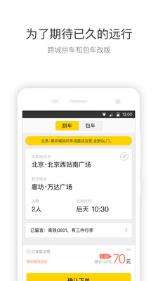 「快巴出行」重新定义了城际出行方式,通过智能平台整合了城际小车预约、汽车票购买等多元化服务。用户可以根据需求自由选择拼车、包车或大巴等出行方式,享受一站式的城际交通体验。平台覆盖全国主要约租车线路,并与北京市汽车站深度合作,支持四惠站、赵公口站等十大车站的汽车票在线购买。2.0版本经过长期用户调研,新增了电子票务、车型翻译等实用功能,让购票流程更加智能化。无论是临时出行还是提前规划,快巴出行都能满足您的不同需求。