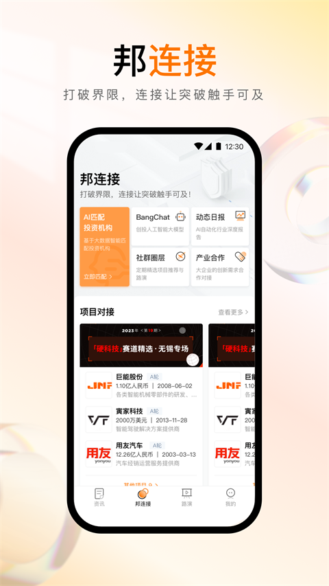 创业邦官方版是一款专为创业者打造的综合性资讯服务平台,致力于为用户提供最新、最全面的创业投资信息。在这个信息爆炸的时代,创业者需要快速掌握市场动态、行业趋势和投资风向,而创业邦正是这样一个值得信赖的助手。无论你是初入创业圈的萌新,还是经验丰富的互联网从业者,亦或是寻找优质项目的投资人,都能在这里找到所需资源。平台不仅提供海量资讯,还能智能匹配投资人与创业者,通过一键约谈功能实现高效对接,大大提升项目融资成功率。此外,我们还整合了创业辅导、融资服务等全产业链资源,帮助创业者一站式解决发展难题。