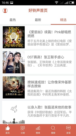 热门铃声:时下热门铃声资源,每日更新1000+,单曲循环100遍不嫌多,保证内容的新鲜度和流行度,让你随时保持时尚。