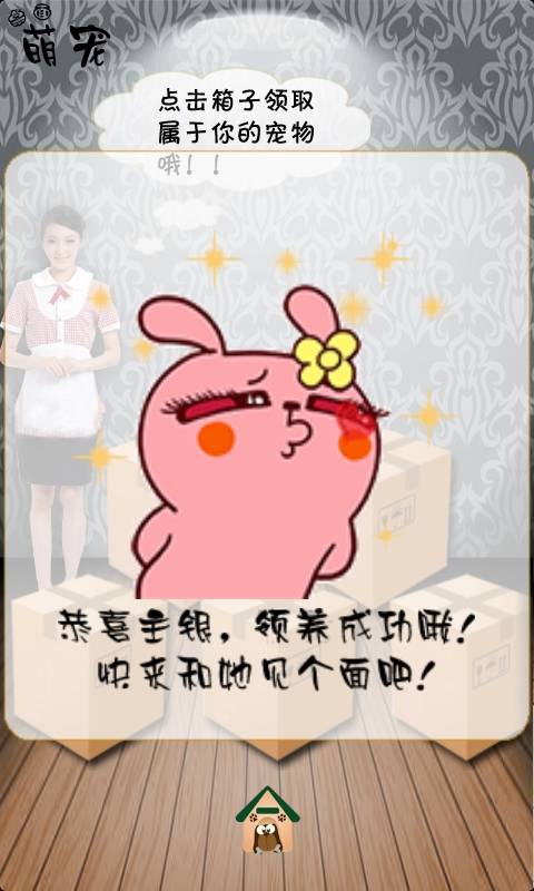 打开应用后,你会看到一个精美的游戏主界面,画面中央站着一位优雅的美女,她身边摆放着五个神秘的箱子。这些箱子里藏着可爱的冷兔,你需要随机点击箱子来寻找它。当冷兔出现时,欢乐时光就正式开始啦!你可以通过触摸屏幕与冷兔进行各种互动:喂它吃美味的胡萝卜,帮它刷牙保持口腔卫生,给它洗澡让它变得香喷喷,或者哄它睡觉看它可爱的睡姿。更神奇的是,冷兔还会用萌萌的声音回应你的互动,仿佛真的能听懂你说的话。随着互动次数的增加,你还能解锁更多隐藏功能和特殊道具,让陪伴体验更加丰富多彩。