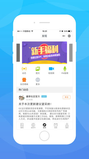 社群互动,支持多媒体内容发布和实时互动,包括图文、短视频、直播等多种形式。完善的点赞、评论、转发功能让交流更加生动有趣。