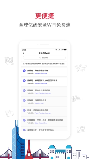 便捷性:一键连接全球主要机场、车站等公共场所的优质WiFi,省去繁琐的验证流程。