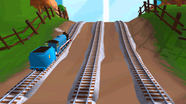 从疯狂过山车山脉下山的途中,维持火车头的平衡。这类特技关卡设计精巧,成功完成将获得三倍金币奖励。