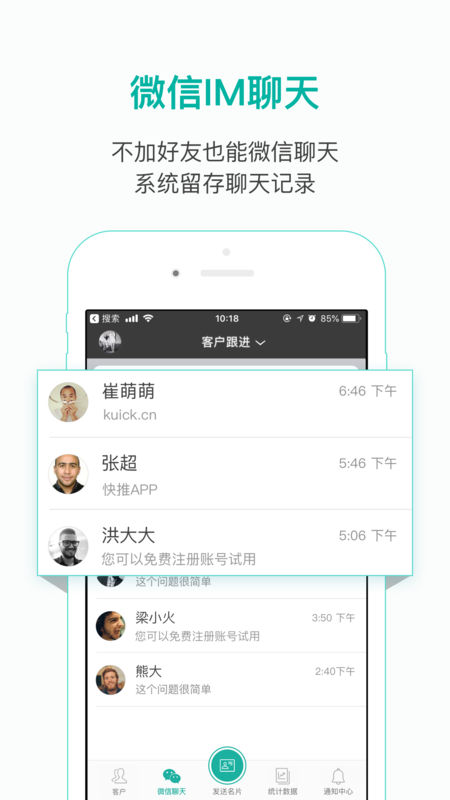 快推是一款功能强大的办公软件,专为提升工作效率而设计。它支持手机和电脑双端使用,无论是文件传输、客户管理还是团队协作,都能轻松应对。通过与微信的无缝连接,用户可以快速向好友推送各类文件,省去了繁琐的操作步骤。此外,软件还提供面对面添加好友功能,帮助用户高效拓展人脉资源,解决获客难题。简洁的界面和流畅的操作体验,让快推成为职场人士不可或缺的办公利器。