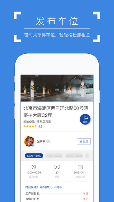 车位发布:个人或企业车位主可快速发布空闲车位信息,系统提供智能定价建议,租金收益实时到账,提现便捷无忧。