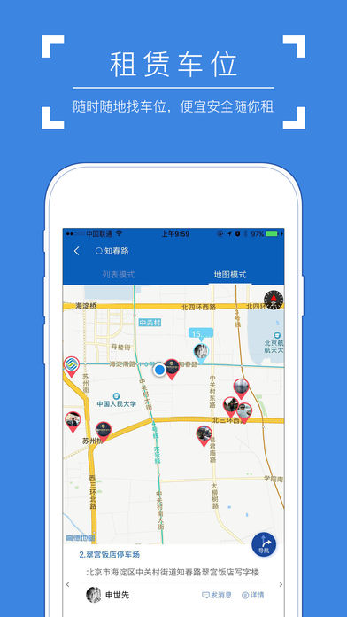 车位查找:智能算法精准匹配周边最优车位,价格低至20元/天起,支持按距离、价格、评价等多维度筛选,让您轻松找到心仪车位。