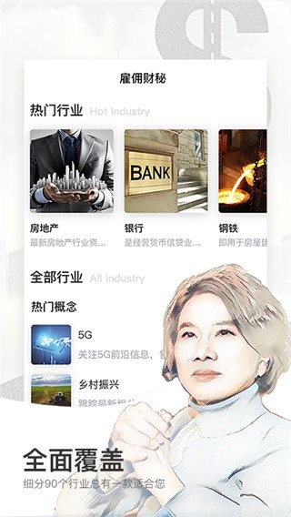 覆盖全面的行业财经资讯信息,包括房地产、银行、钢铁等90个行业的资讯;每个行业都有专业分析师团队持续跟踪。