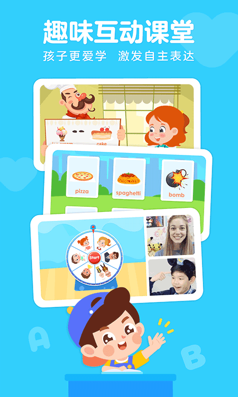 严格筛选发音纯正、富有亲和力的欧美外教,采用25分钟高效课堂模式。外教善于运用肢体语言、表情动作等非语言交流方式,帮助孩子理解教学内容,培养英语思维。