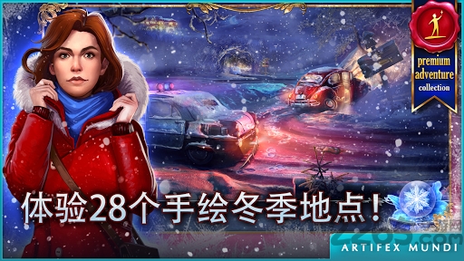 游戏包含超过30个精美的手绘隐藏物品场景,每个场景都设置在白雪皑皑的独特背景下!