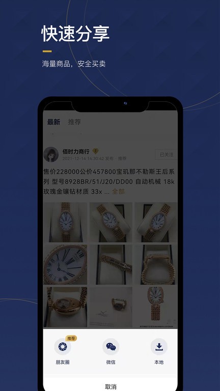 物鱼奢品圈app是一款专为奢侈品爱好者打造的高端交易平台,汇聚全球知名腕表品牌,为用户提供安全可靠的买卖体验。无论是资深收藏家还是初次接触奢侈品的用户,都能在这里找到心仪的腕表。平台严格筛选优质商家,确保交易过程透明高效,同时提供专业的鉴定、维修等增值服务,让每一次交易都充满信心。简洁直观的界面设计搭配智能搜索功能,让您轻松探索海量精品,享受尊贵便捷的购物之旅。