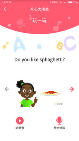 开心英语启蒙是一款专为3-12岁儿童打造的英语启蒙App,由专业教育团队精心研发,结合国际先进教学理念,打造沉浸式学习环境。软件包含丰富的互动课程和趣味练习,通过情景对话、儿歌动画等形式,让孩子在玩乐中自然习得英语。同时提供家长监控功能,帮助家长了解孩子学习情况,共同参与孩子的英语启蒙之旅。