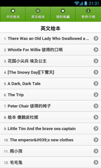 本应用汇集了来自世界各地的经典儿童文学作品,经过教育专家精心筛选,确保每本绘本都兼具教育性和趣味性。这些故事巧妙融入了情商培养、社交技能、科学启蒙等教育元素,通过精美的动画效果和可爱的卡通形象,激发孩子的阅读兴趣。特别值得一提的是,所有绘本都配有专业播音员录制的标准发音,语速适中,便于幼儿跟读学习。应用界面采用大色块设计,操作简单直观,即使3岁幼儿也能轻松使用。目前收录的200多本绘本涵盖童话、寓言、科普等多个类别,后续还将持续更新更多优质内容。
