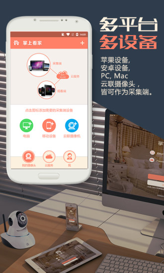 第二步: 在您的手机或平板上安装"掌上看家观看端"应用,完成注册并登录。