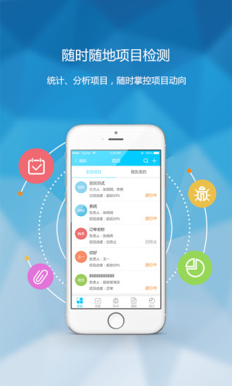 项目管理:只需要在项目管理中创建一个项目,即可轻松与团队成员共同管理完成项目的工作内容。项目负责人可对项目进行工作分配,实现团队协同完成项目。项目管理还可以随时跟进并展现项目完成情况,做到实时监测,全面掌控。系统支持甘特图展示,自动计算关键路径,并提供风险预警功能。