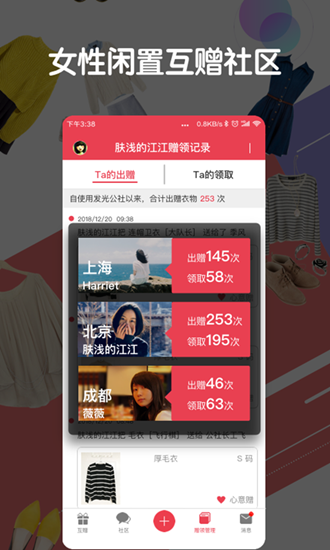 出赠闲置物品的流程非常简单:登录app后点击发布按钮,选择"发布闲置"选项,按照格式要求填写物品信息并发布。当有人对你的物品感兴趣时,他们可以加入排队等待领取。你可以查看排队用户的信息,与他们沟通确认后预约快递发货。完成发货后等待对方收货,一次有意义的闲置物品互赠就完成了。