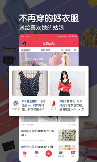 发光公社app创造性地提出了"你之闲置,她之珍宝"的理念,鼓励用户通过互赠的方式让闲置物品重获新生。这不仅是对资源的珍视,更是对环境的一份关爱。平台汇聚了大量乐于分享、积极向上的都市女性,她们用实际行动打破"二手物品"的刻板印象,大方地出赠自己的闲置,快乐地接受他人的馈赠。在这里,每一次互赠都是一次温暖的传递,每一件物品都承载着分享的喜悦。