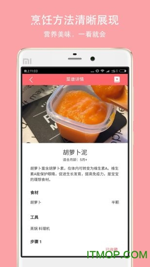 【优化】优化辅食图片、菜谱图片、访问速度,提升用户体验。新增食材实拍图和步骤分解图,让制作过程更直观易懂。