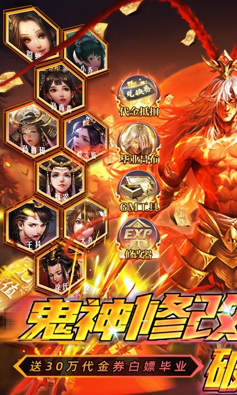 新玩家登录即送VIP7特权,免费领取顶级武将鬼神吕布,搭配天金修改器包快速毕业。每日登录可领橙装套装、百万铜币等成长资源,七日签到更有神将灵雎相赠。