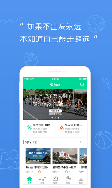 想开启一段与众不同的骑行冒险吗?《爱骑旅》APP将为您带来前所未有的骑行体验。这款专为骑行爱好者打造的智能应用,不仅能规划个性化路线,还能连接全球骑友社群。无论您是追求速度与激情的专业骑手,还是享受慢骑观光的休闲玩家,爱骑旅都能满足您的需求。通过精准的GPS定位和丰富的路线数据库,让您轻松探索城市街巷与自然风光,体验骑行带来的自由与快乐。现在就加入我们,开启您的绿色骑行之旅吧!