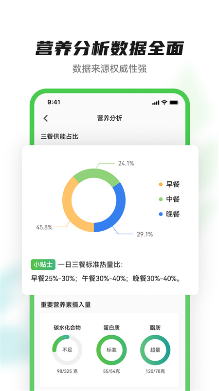 采用直观的图表形式展示营养数据,通过饼图、柱状图等多种可视化方式呈现每日热量摄入分布。所有营养分析数据均来自权威机构认证的数据库,确保分析结果的科学性和可靠性。用户可以通过时间轴查看历史饮食记录,轻松追踪营养改善进度。