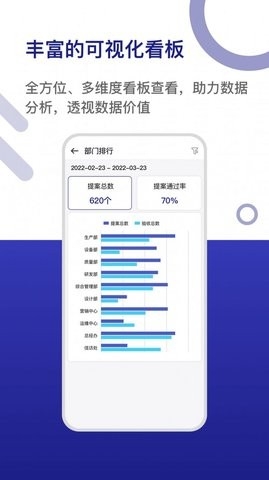 爱波瑞精益云内置了精准的部门排行榜功能,能够统计各部门的提案数量,帮助管理者快速了解团队的工作情况。软件还提供了直观的提案通过率分析,并通过丰富的可视化看板展示数据,让用户一目了然。用户可以通过多维度的数据看板查看店铺运营情况,并利用精准的数据分析工具优化决策。此外,软件还能生成详细的运营效率报告,帮助用户发现潜在问题并制定改进策略,从而提升整体业绩。