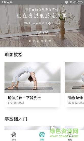 零基础入门分为上、下两套,其中上部分又分为15节课程,重点讲解呼吸法和基础体式;下部分也分为15节课,着重培养身体协调性和力量。整套课程设计符合国际瑜伽联盟教学标准。
