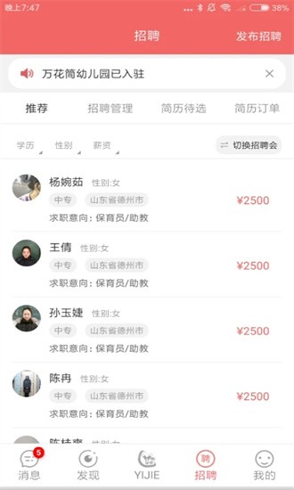 奕杰阳光企业版app可以随时随地查看管理投递和下载的简历;自定义筛选条件组合,自动标记优质候选人。