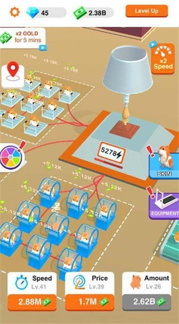 在空闲仓鼠发电厂中,玩家需要通过不断积累仓鼠来扩大发电厂规模。随着发电厂规模的扩大,玩家可以获得更多的金币奖励。游戏采用了简单易懂的商业模式,让玩家能够轻松上手操作。操作越熟练,发电厂的规模就能发展得越大。玩家需要持续增加仓鼠数量,因为仓鼠数量越多,发电效率就越高。此外,玩家还可以陆续建立多个发电厂,为仓鼠活动区提供更好的服务,吸引更多顾客前来参观。