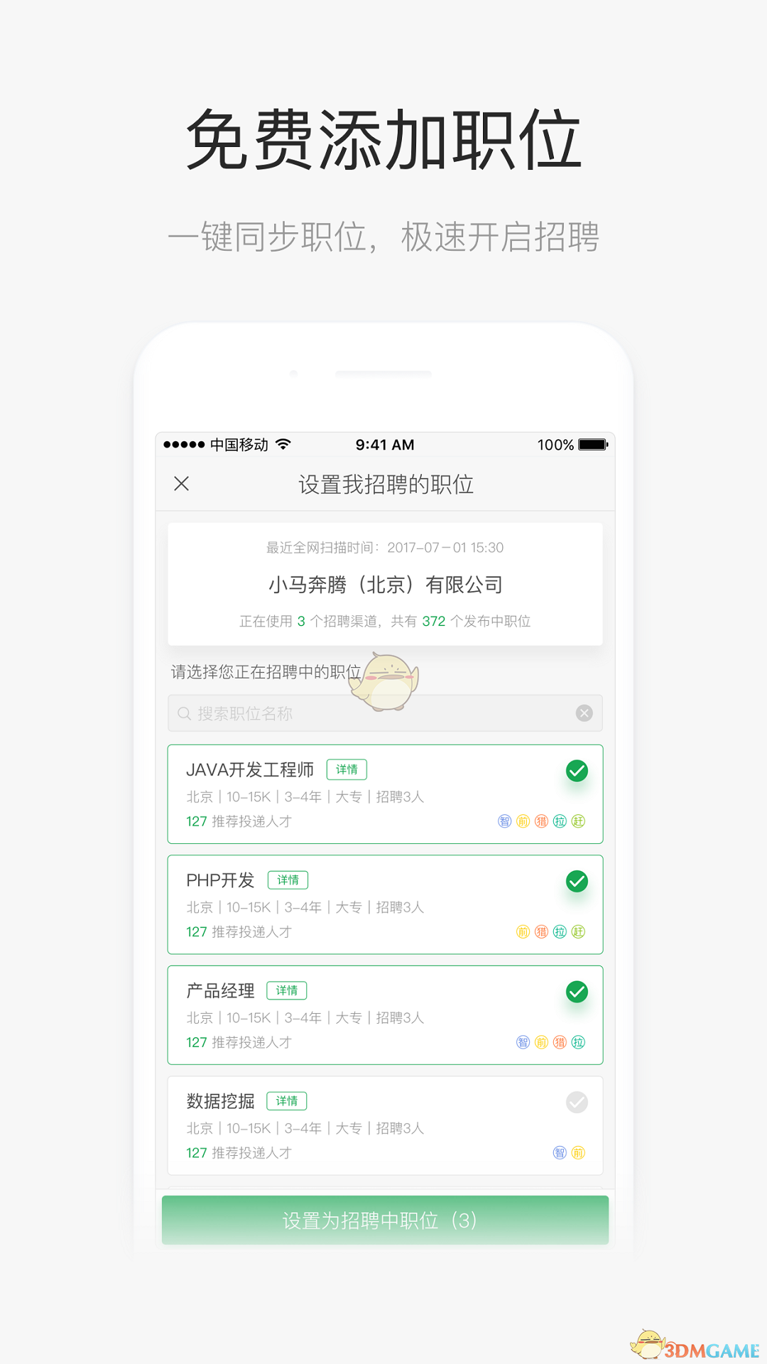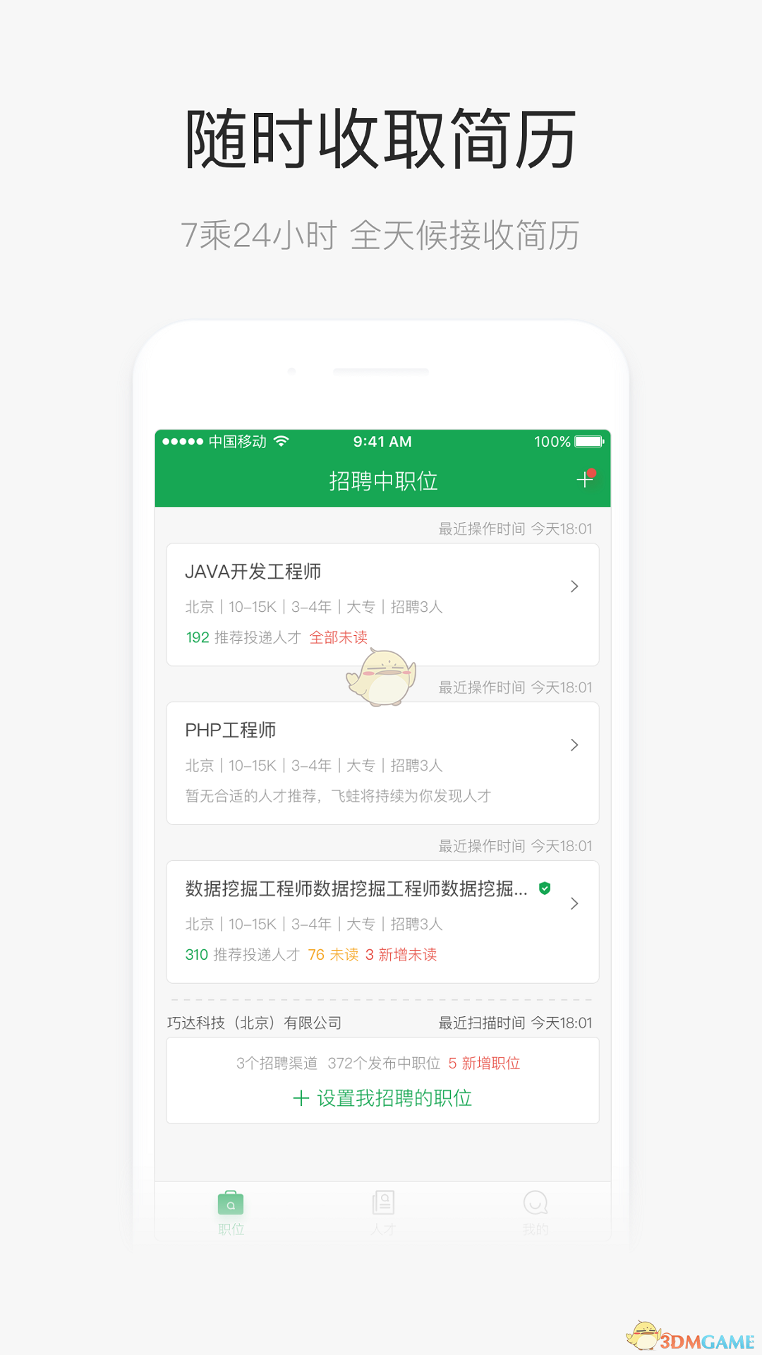 一键同步智联、前程、猎聘、58赶集和拉勾在招职位,实现多平台统一管理,大幅提升工作效率;