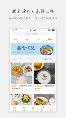 轻食:提供覆盖11个年龄段不同维度人群的专家,用户也能跟着专家搭配饮食,吃的均衡,吃的健康。新增热量计算器和营养分析功能,让饮食管理更科学。支持一键生成每周食谱,解决选择困难症的烦恼。