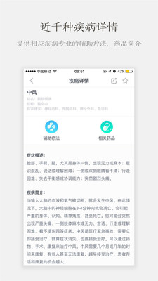 其中疾病大全是核心内容,覆盖15大学科近千种疾病,包含12大类疾病信息让您就医后轻松检索疾病信息,学习疾病指导护理。新增症状自测功能,帮助用户初步判断可能患有的疾病。支持创建个人健康档案,记录病史和检查报告。