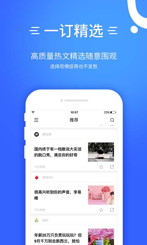 一订看看app是一款专注于个性化阅读体验的优质内容聚合平台,让您轻松发现并阅读真正感兴趣的文章。这里汇聚了来自各个领域的海量公众号资源,每日持续更新推送精选热文,帮助您摆脱信息过载的困扰。通过智能推荐算法,系统能够精准匹配您的阅读偏好,让您与志同道合的朋友一起分享阅读乐趣,感受世界的精彩变化。无论是休闲娱乐还是知识获取,这里总有一篇文章能让您爱不释手。