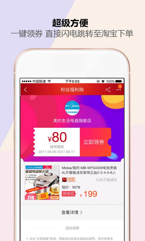 新增一键分享功能,方便用户将超值优惠分享给亲朋好友;新增小程序码功能,有效解决淘口令被封的问题,提升用户体验;优化了界面设计和交互流程,使操作更加流畅便捷。