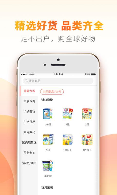 精选好货品类齐全。平台精选全球优质商品,涵盖德国奶粉、日本药妆、澳洲保健品等上万种商品。专业的买手团队定期更新商品,让用户足不出户就能买到心仪的全球好物。