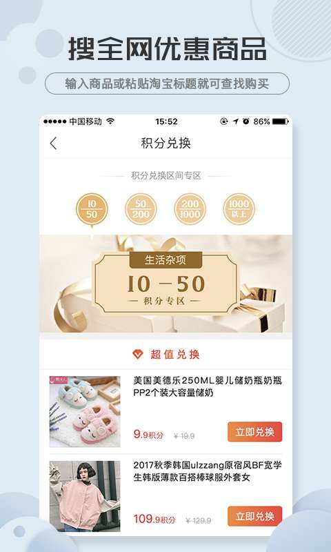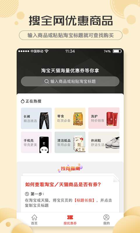惠享淘官方版操作简单便捷,界面设计清新直观,即使是初次使用的用户也能快速上手。无论是寻找优惠券、比价购物还是参与合伙人计划,都能轻松完成。现在就下载惠享淘官方版,开启您的省钱赚钱之旅吧!