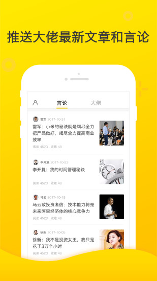 大佬说App是一款专为求知者打造的知识聚合与深度阅读平台,汇聚了国内外各领域顶尖人士的精华内容。在这里,您可以轻松追踪企业家、投资人、创业者等500余位行业领袖的最新动态,实时获取他们的原创文章与深度观点。应用采用智能推送机制,确保您不会错过任何有价值的信息,同时支持个性化收藏与社交分享功能,让知识获取更加高效便捷。无论是商业洞察、科技前沿还是人文思考,大佬说都能为您提供一站式的优质阅读体验。