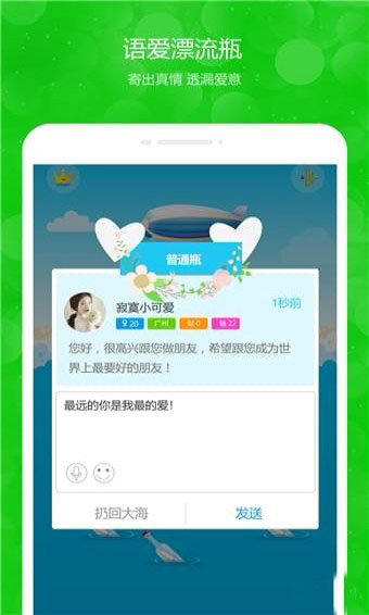 语爱漂流瓶拥有简洁美观的全新界面设计,操作流畅,带来前所未有的社交体验;