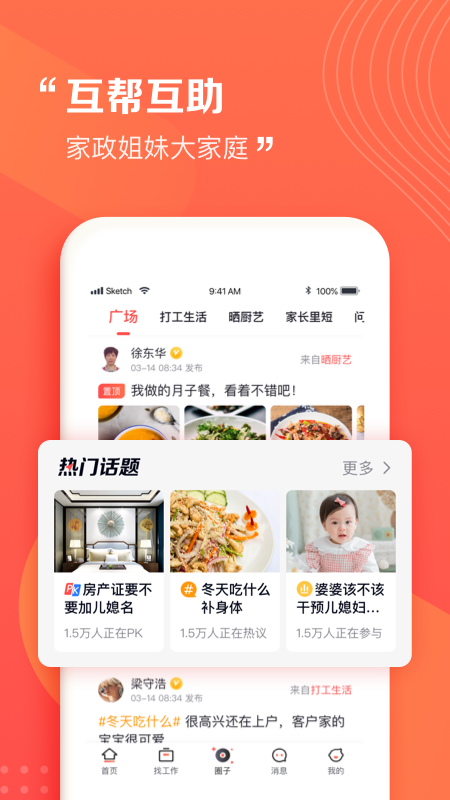 阿姨圈:分设经验交流区、情感树洞区、技能问答区等板块,支持语音发帖和视频分享,打造家政人的精神家园。