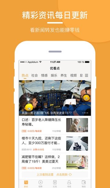 《优看点》是一款汇聚海量优质内容的手机应用,为用户带来全新的娱乐与收益体验。这款APP不仅提供丰富多样的趣味视频和精选文章,还能通过邀请好友获得现金奖励,让用户在轻松阅读的同时享受额外收益。平台采用智能推荐算法,每日更新最新鲜、最热门的内容,涵盖搞笑、情感、科普等多个领域。无论是想放松心情还是获取知识,优看点都能满足您的需求。现在就下载体验,开启您的趣味阅读之旅吧!