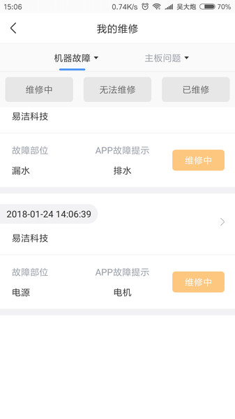 【维修列表】清晰展示所有待维修的机器订单,方便快速处理。