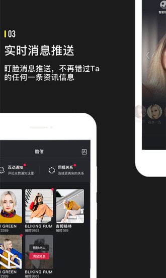 刷脸搜索,轻松添加好友。创新的面部识别技术确保匹配精准度高达99.9%。