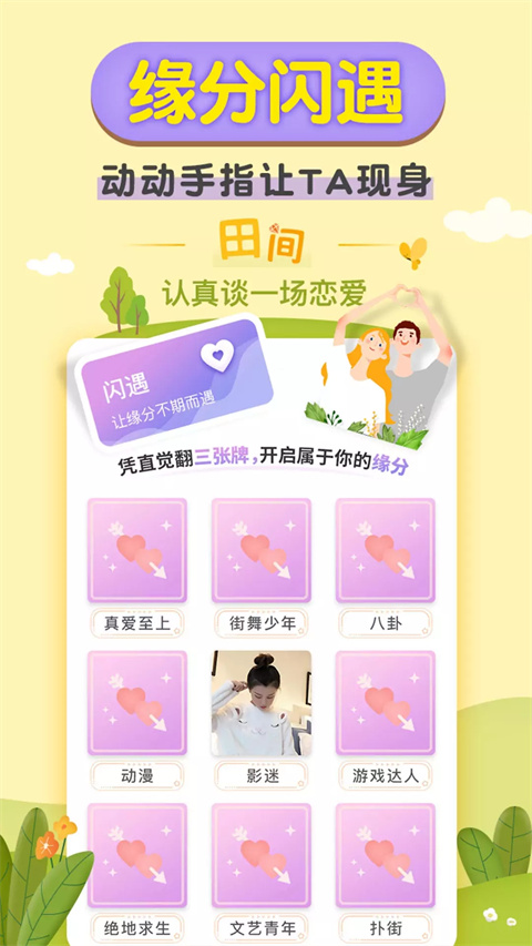 【闪遇】拼缘分交友,提供线上沟通交友方式,可发布动态,在线聊天;相互选择心动单身男女,找到恋爱交友对象,让你即刻脱单;找到志趣相投知己。系统会根据你的兴趣爱好和交友需求,智能推荐最匹配的潜在对象,让每一次相遇都充满惊喜。