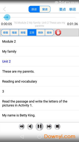 听力训练:支持自由选择课文段落,可调节播放速度,方便学生反复聆听揣摩,培养纯正英语语感。
