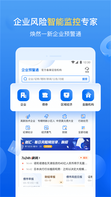 企业预警通app是一款专为企业用户设计的智能化风险监控与管理软件,通过整合人工智能技术与大数据分析能力,为企业提供全方位的风险预警服务。该软件能够实时监测企业运营过程中可能面临的各类风险,并通过智能算法精准识别风险点,及时推送预警信息,帮助企业管理者快速响应并采取应对措施。无论是资产规模庞大的大型集团,还是处于成长期的中小型企业,都能通过这款软件获得专业级的风险监控服务。
